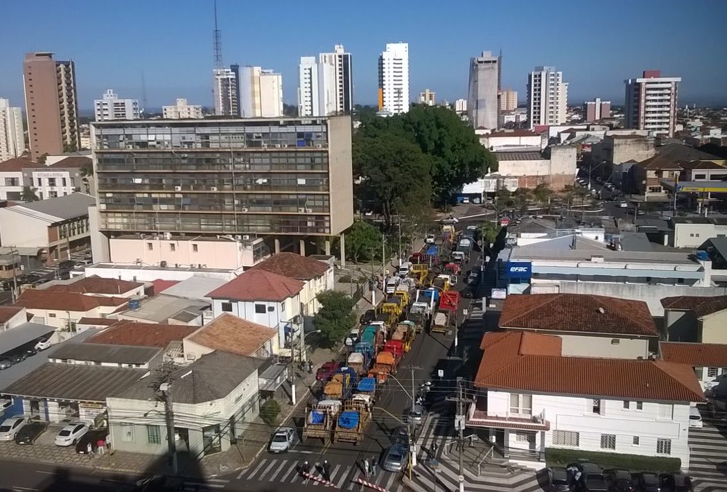 Dezenas de caminhões participaram em ato no Centro de Marília (Foto: Divulgação)