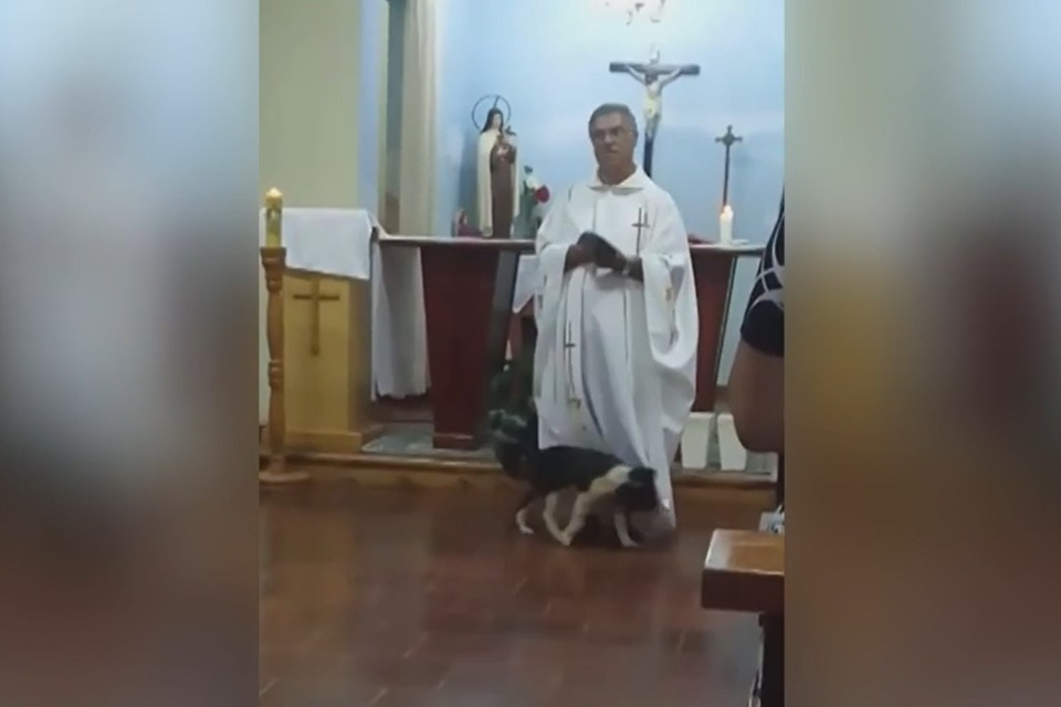 Enquanto o padre Irineu Neto Guedes Machado celebrava a missa, um cachorro resolveu brincar com a batina dele, divertindo quem estava ao redor. Em entrevista ao jornal local Diário de Santa Maria, o sacerdote, de 62 anos, conta que adotou o animal, chamado Seliguedim, há três meses.