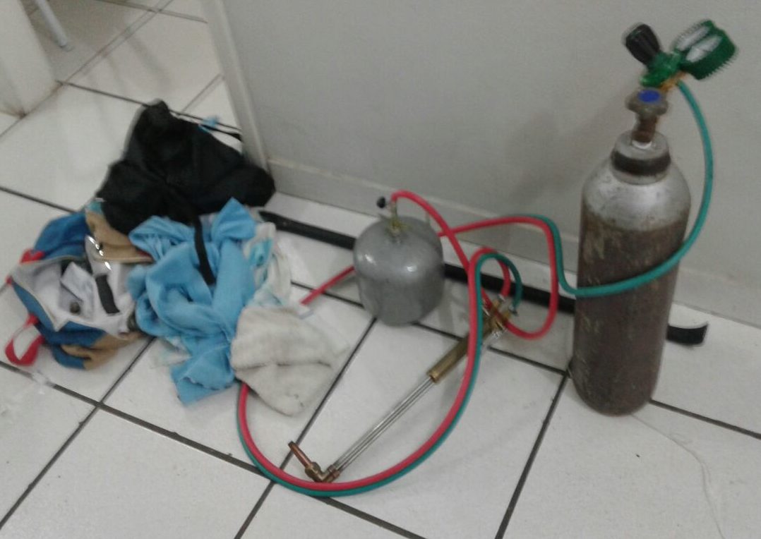 O material utilizado no arrombamento – maçarico e apetrechos – foi deixado no local e apreendido.