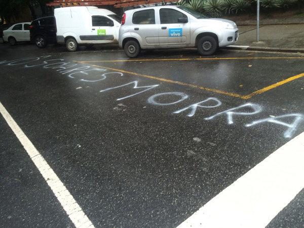A rua em frente ao condomínio onde mora Jô Soares, em Higienópolis, foi pichada com a frase: “Jô Soares morra”. O ato de vandalismo aconteceu uma semana após o apresentador entrevistar a presidenta Dilma Rousseff.