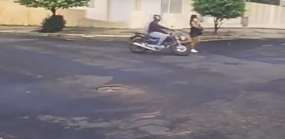Segundo a vítima, o criminoso era branco, trajava moletom vinho e estava com capacete preto e motocicleta na mesma cor. O vídeo mostra o criminoso tomando o aparelho celular da mão da vítima, que tenta impedir o crime, até ser derrubada no chão.