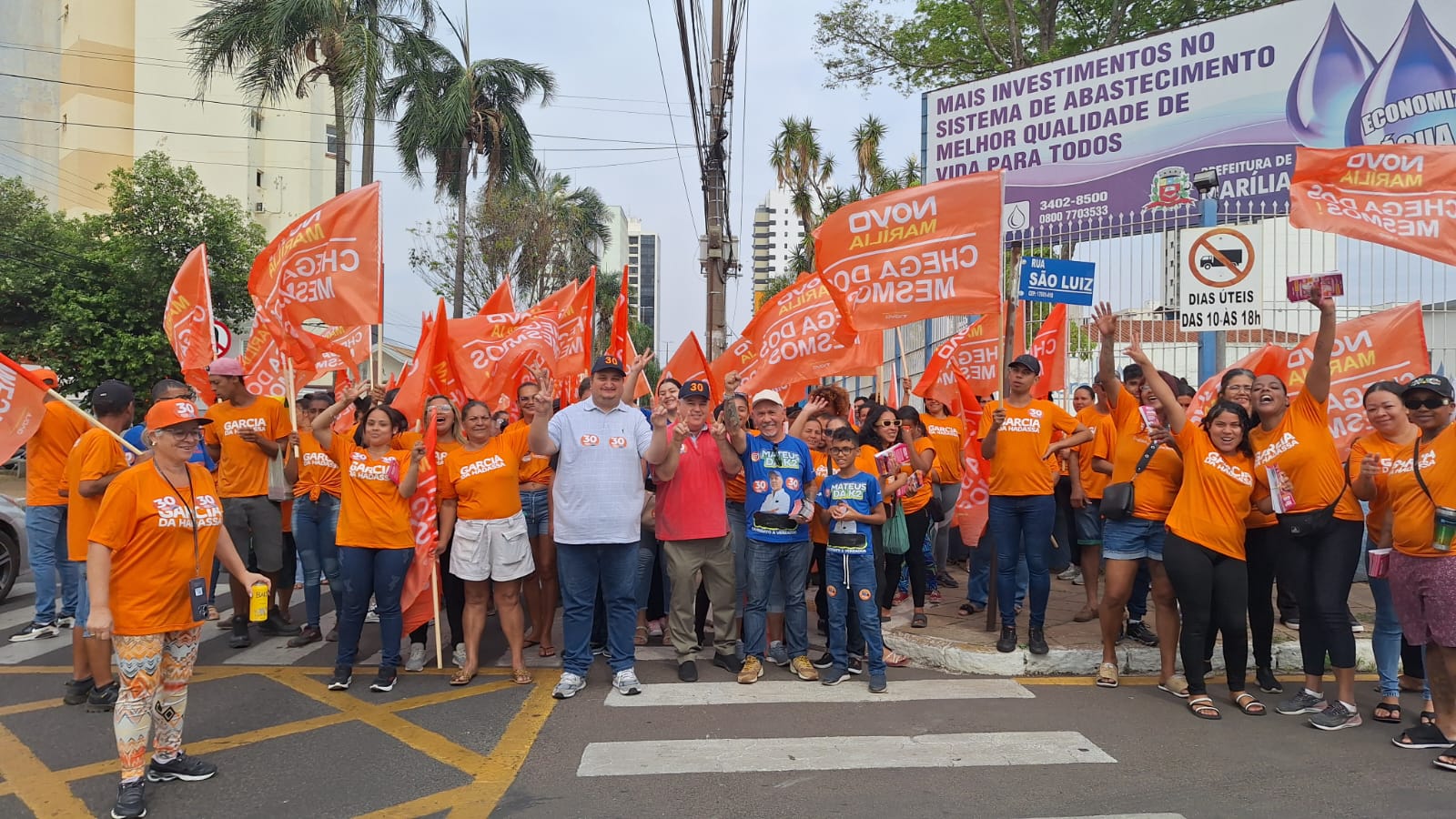 O evento, denominado ‘Caminhada da Mudança’, contou com a participação de centenas de pessoas que acompanharam os candidatos pelas avenidas Rio Branco, Sampaio Vidal e as ruas São Luiz, Quatro de Abril e Nove de Julho.