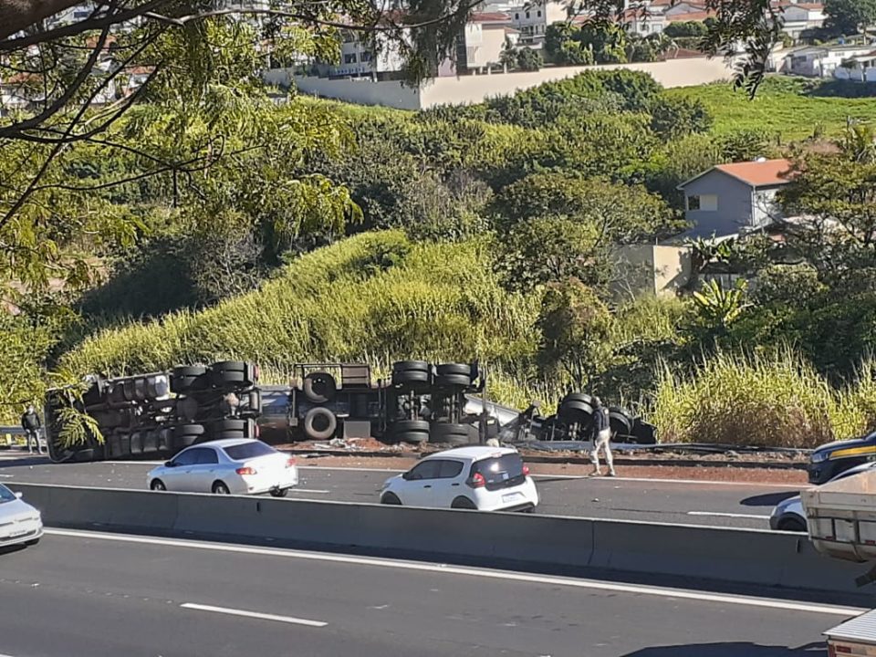O caminhão seguia no sentido Hospital das Clínicas (HC) à Universidade de Marília (Unimar). O condutor sofreu ferimentos leves. Ele admitiu que acabou dormindo ao volante. A polícia e a concessionária que administra a rodovia estão no local e atendem a ocorrência.