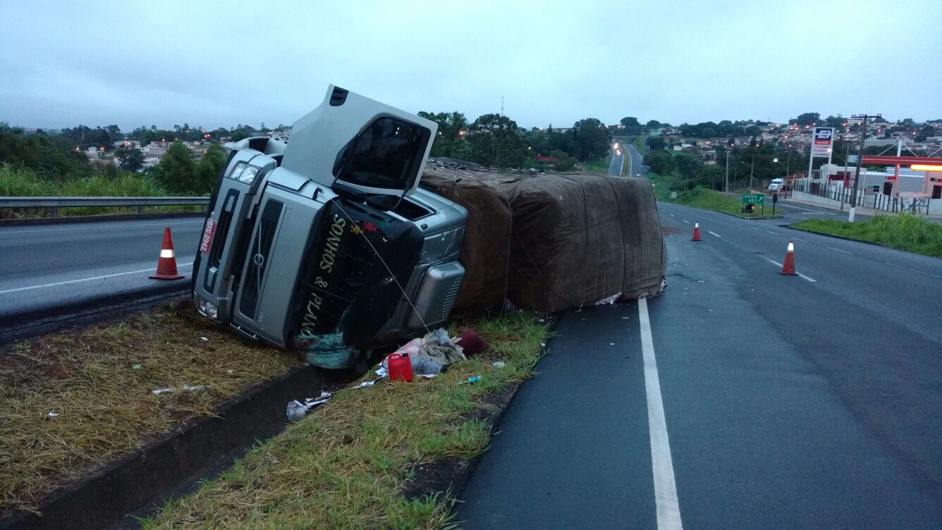 O acidente ocorreu por volta das 5h. Segundo testemunha, o caminhoneiro ao tentar ultrapassagem foi ‘fechado’ por outro veículo e perdeu o controle da direção.