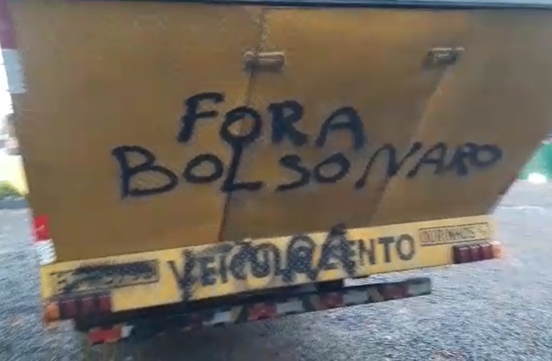 No veículo foram escritas frases contra o presidente Jair Bolsonaro, de mesmo partido. Um Boletim de Ocorrência foi registrado e o caso será investigado pela Polícia Civil.