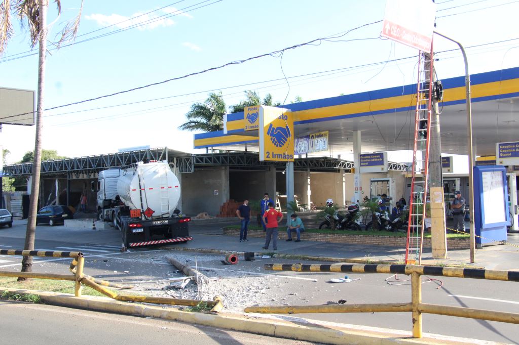 O caminhão tanque descarregava combustíveis em um posto na avenida – à margem da pista bairro-centro – quando teria perdido o freio.