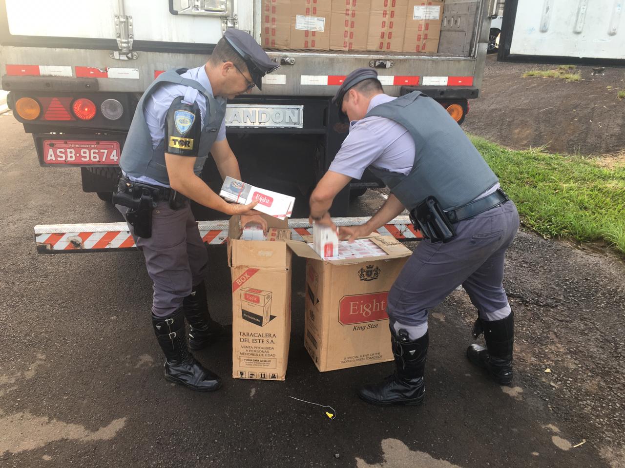 A Polícia Rodoviária Estadual (PRE) flagrou um caminhão carregado com cigarros contrabandeados no final da tarde desta sexta-feira (20) na Rodovia Orlando Qualgiato (SP-327) em Santa Cruz do Rio Pardo (distante 120 quilômetros de Marília).