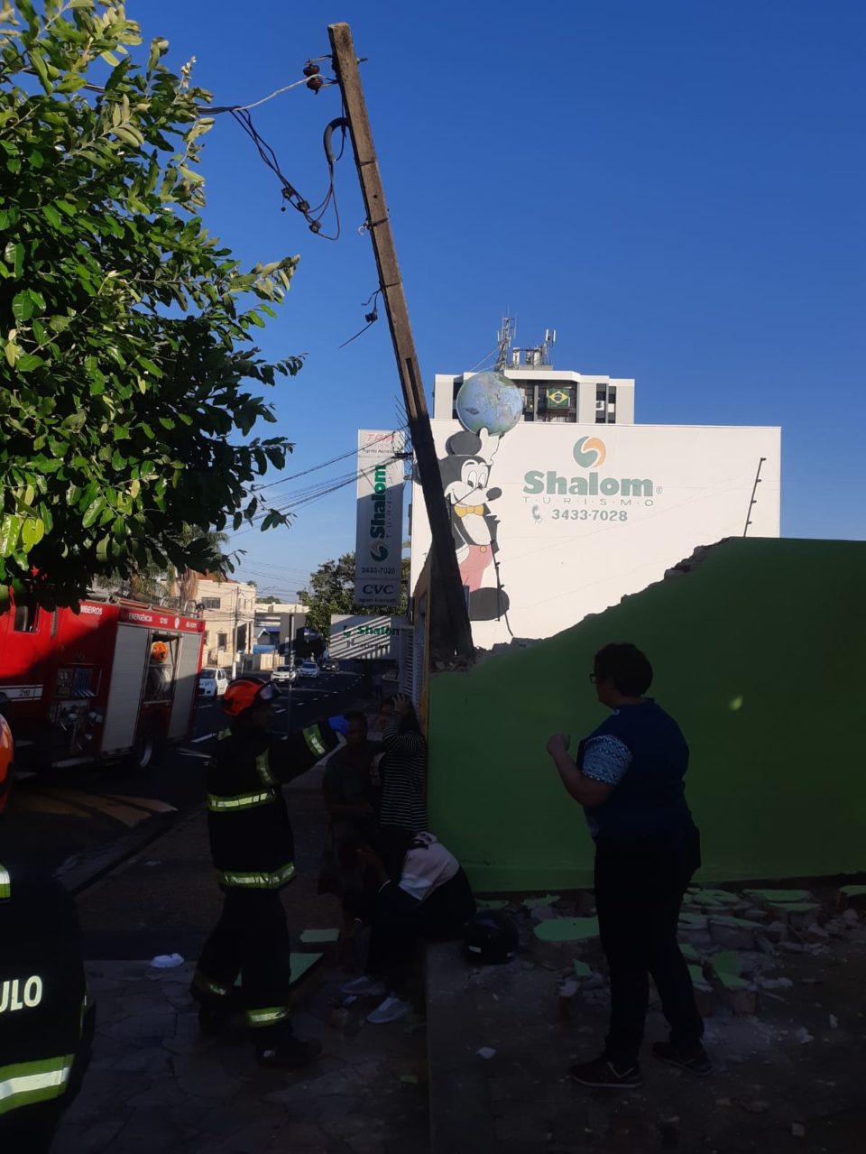 Ao cair, o poste acabou atingindo o muro, que despencou sobre as jovens que estavam sentadas na calçada.