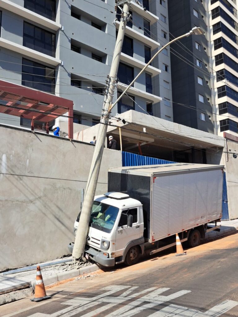 Um acidente na manhã desta segunda-feira (8), no bairro Barbosa, região central da cidade, deixou imóveis sem energia e assustou quem passava pelo local. Um caminhão de mudanças atingiu um poste, após possível falha mecânica. Ninguém ficou ferido.