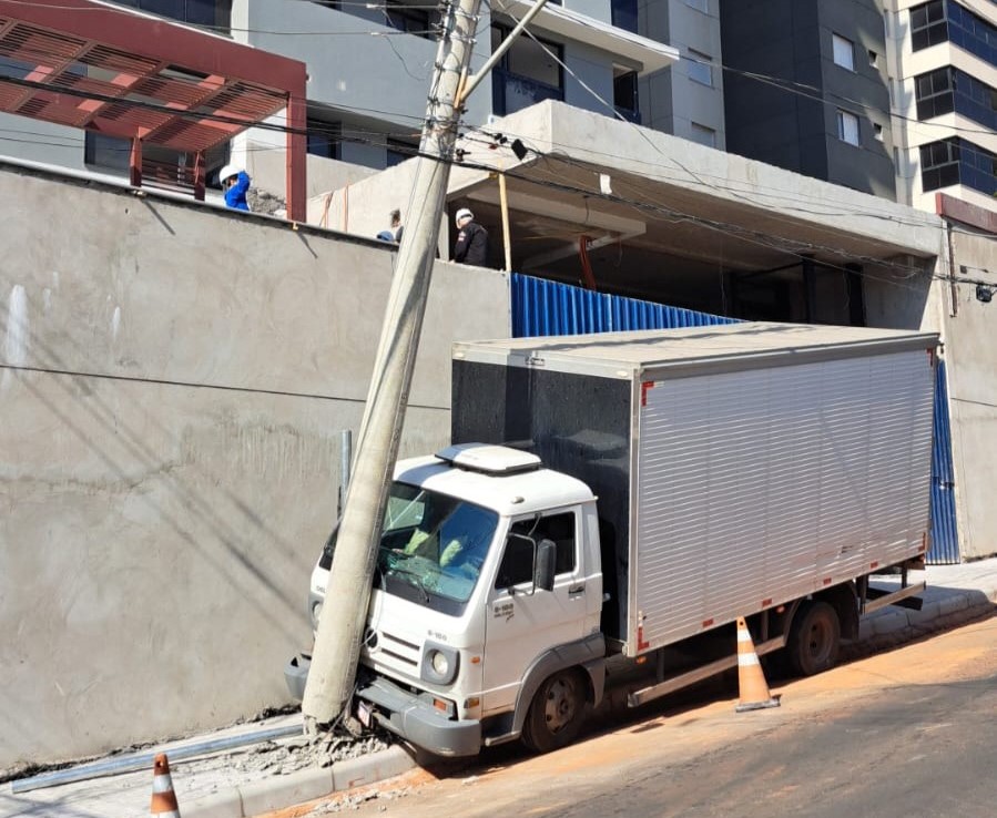 Um acidente na manhã desta segunda-feira (8), no bairro Barbosa, região central da cidade, deixou imóveis sem energia e assustou quem passava pelo local. Um caminhão de mudanças atingiu um poste, após possível falha mecânica. Ninguém ficou ferido.