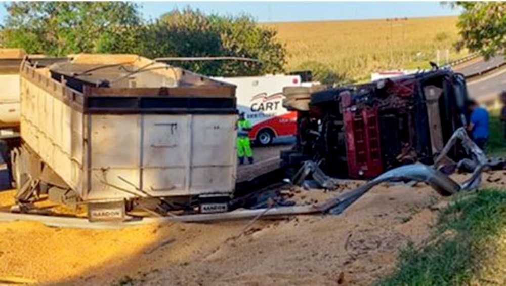 Parte da carga ficou espalhada na rodovia e duas faixas ficaram interditadas até por volta das 18h30. Três ocupantes do caminhão tiveram ferimentos leves.