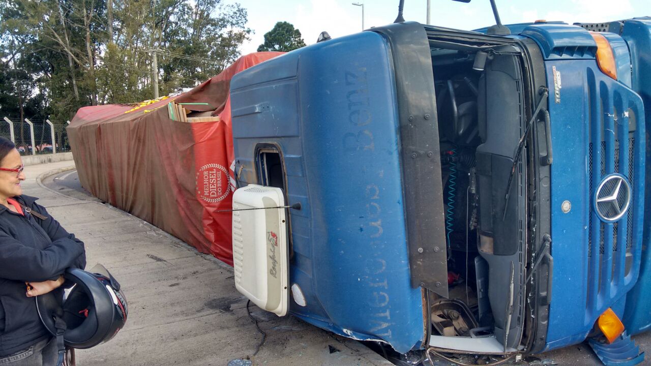 O trânsito no local ficou alguns minutos comprometido por causa do tombamento. As causas serão apuradas.
