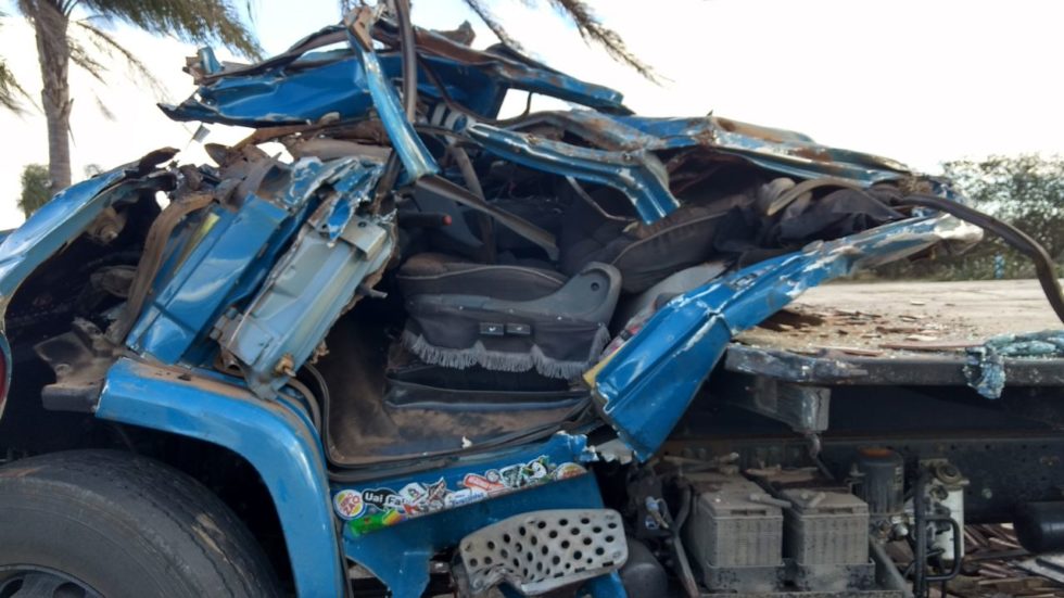 Caminhão destruído após acidente (Foto: Divulgação/PRF)