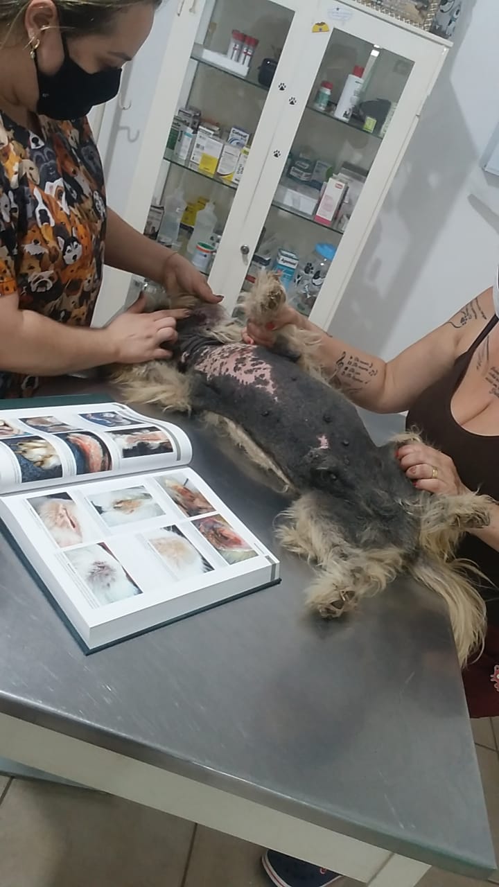 O cão foi levado até uma clínica veterinária, onde foram realizados vários tratamentos caros, já que o animal possui malasseziose – uma doença que causa lesões de pele (dermatite) em cães e gatos.