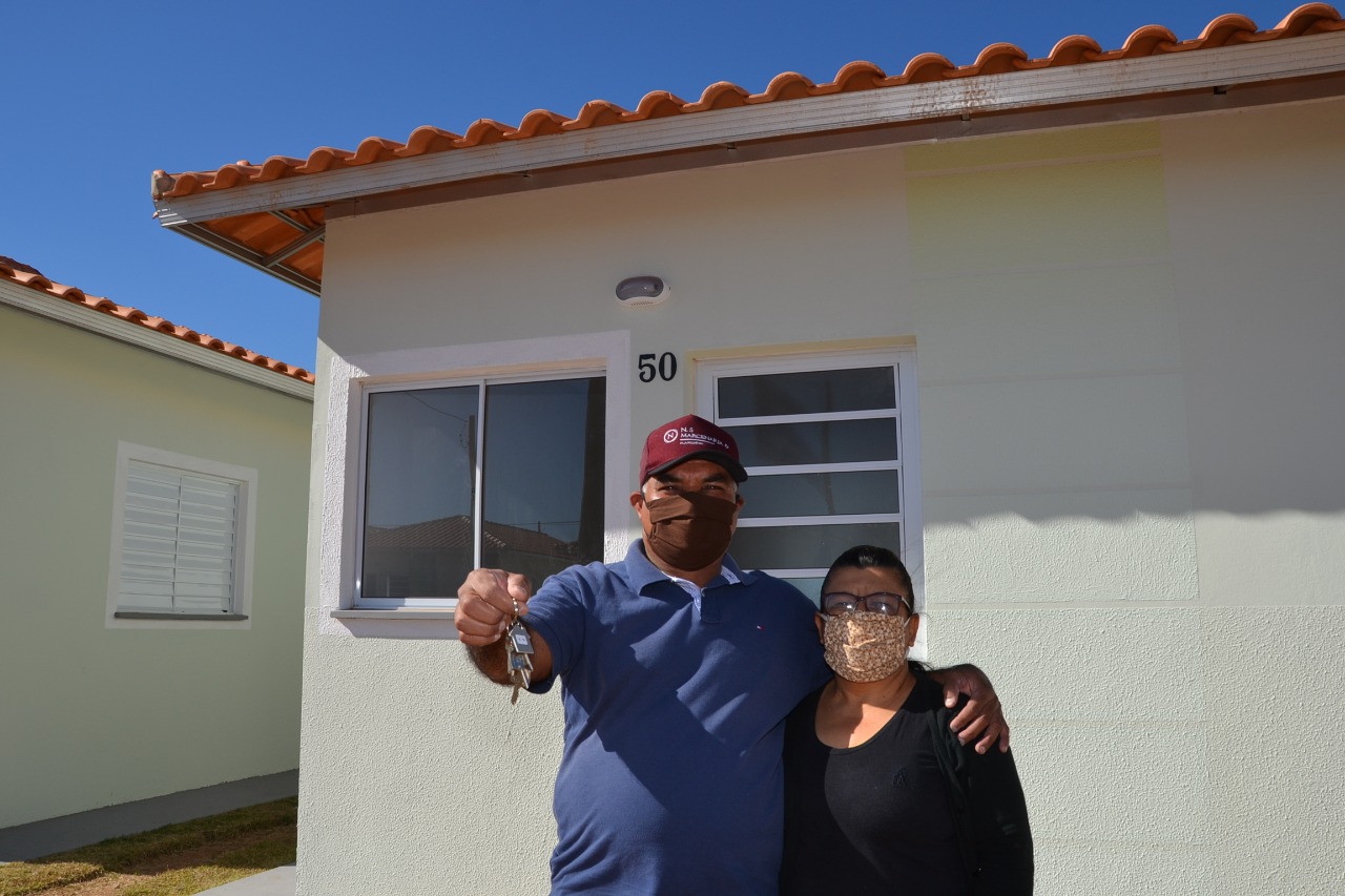 Jhony e Verônica seguram a chave do novo lar (Foto: Leonardo Moreno/Marília Notícia)