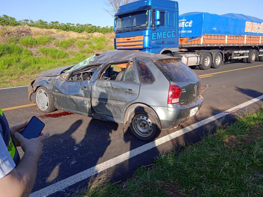 A Polícia Militar Rodoviária (PMR) foi acionada às 6h30 no quilômetro 17,5. No local, a equipe verificou que um Volkswagen Gol transitava no sentido de Álvaro de Carvalho a Garça, quando o motorista perdeu o controle da direção em uma curva, se chocou contra um barranco e capotou.