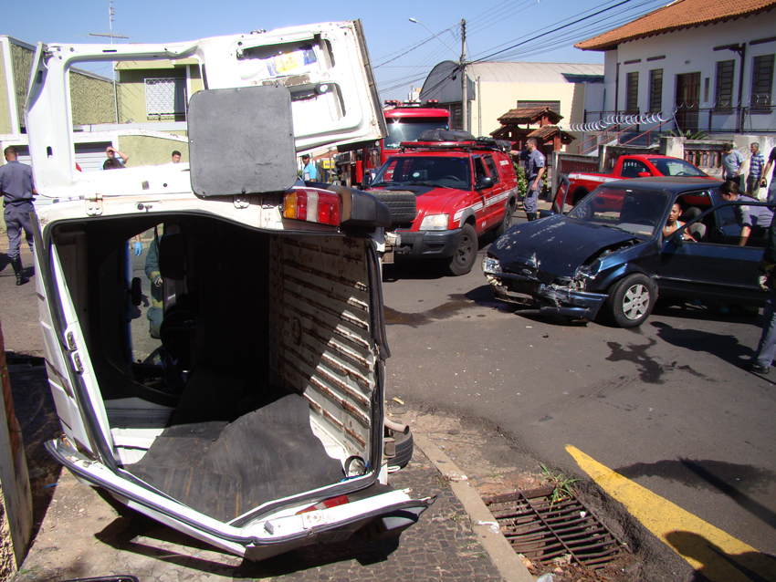 Segundo as primeiras informações da polícia, três pessoas ficaram feridas após um Fiat Fiorino e um Escort se chocarem. Um dos carros não respeitou a sinalização e com o impacto a Fiorino acabou capotando.