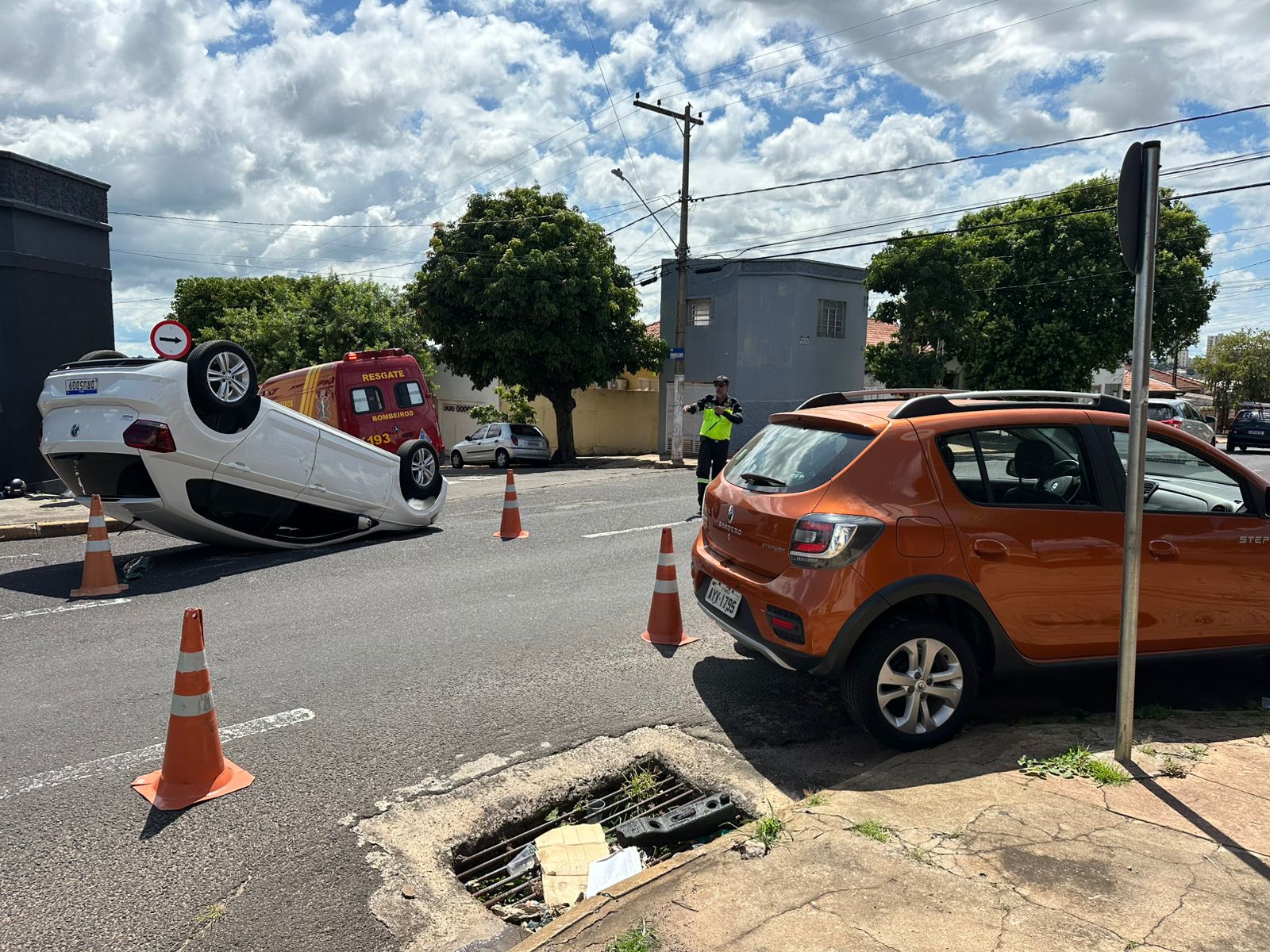 Capotamento em um cruzamento da região central da cidade, na manhã desta sexta-feira (3), causou tumulto no trânsito e mobilizou serviços de urgência e controle de tráfego. O acidente envolveu um veículo Volkswagen Polo branco, que acabou com o teto no asfalto, após uma colisão.
