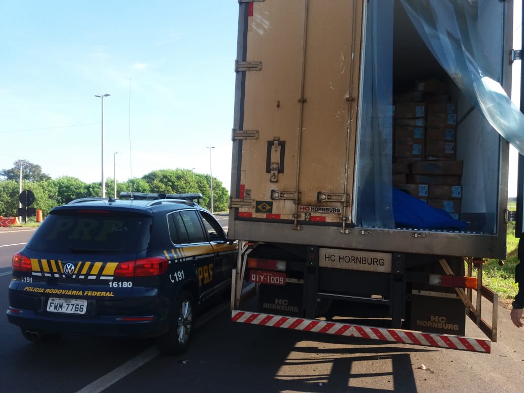A abordagem aconteceu no quilômetro 347, por volta das 7h30. Os policiais perceberam indícios de falsificação nas notas fiscais apresentadas. Segundo o motorista, a mercadoria teria sido carregada em Cascavel (PR).