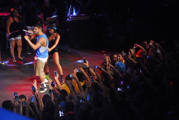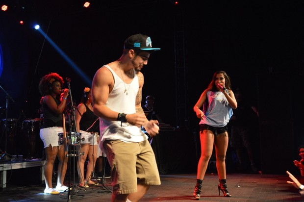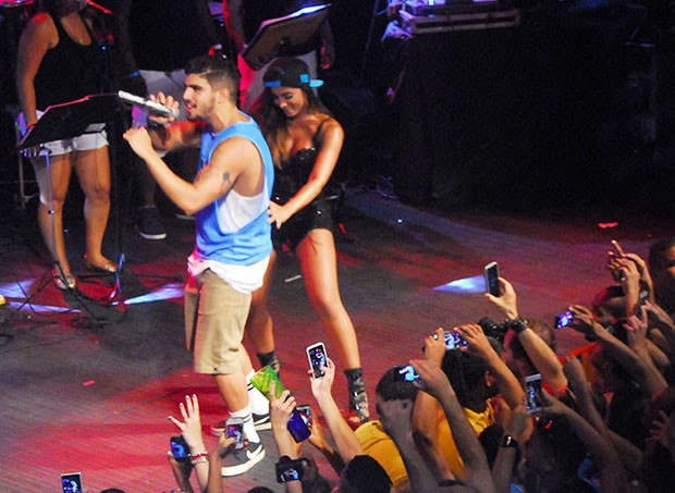 De cima do palco, a cantora convocou Caio Castro, que estava assistindo à apresentação no camarote e aproveitou para dançar e sensualizar com o ator ao som de “Gordinho gostoso”, de Neto LX, música candidata a hit do carnaval deste ano.
