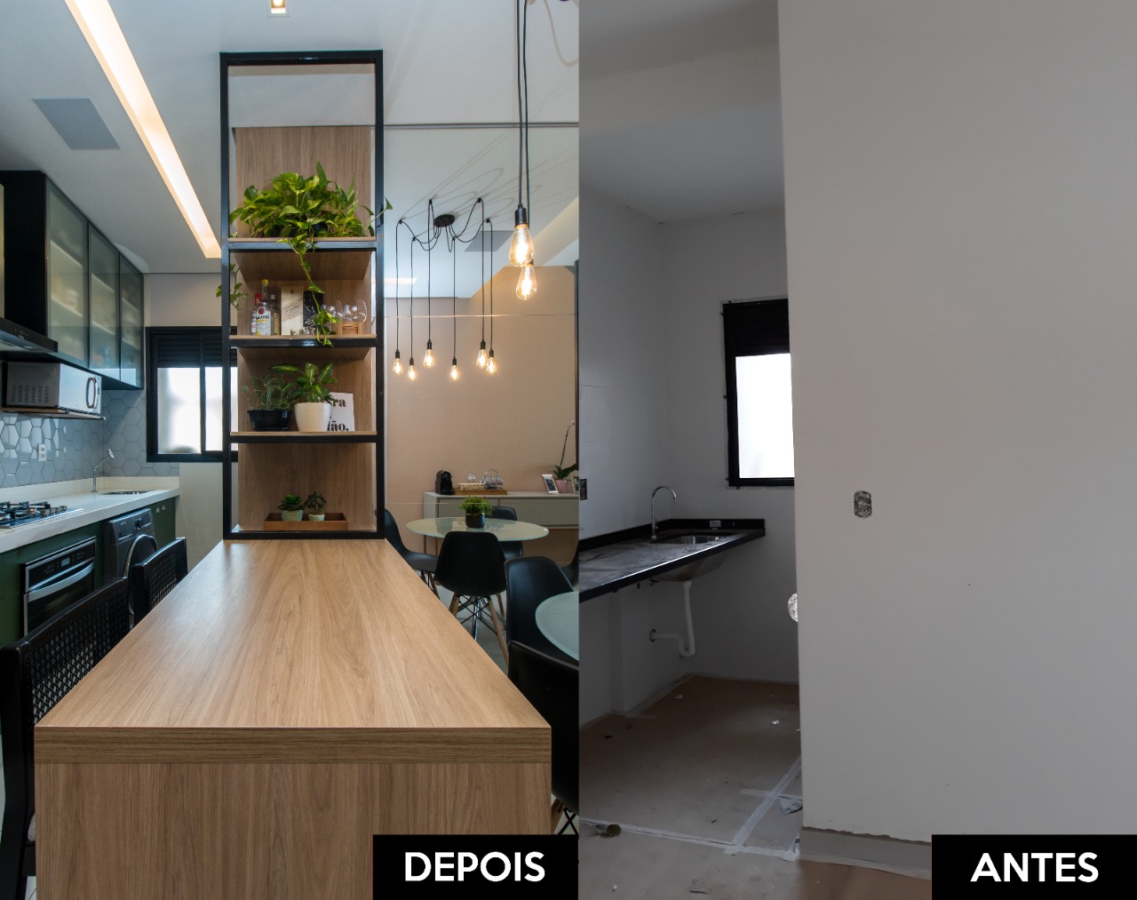 Antes e depois da cozinha do apê (Foto: Divulgação)