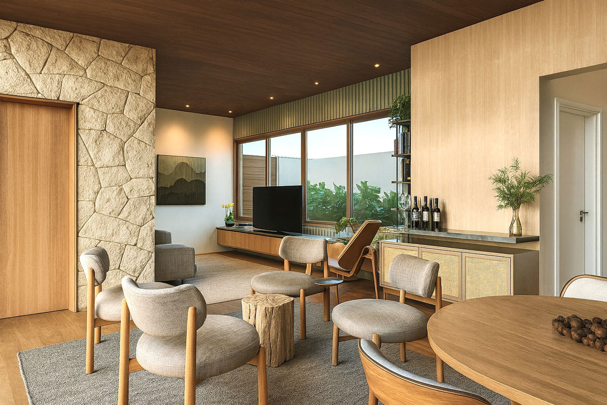 A planta se ajusta ao seu fluxo, não o contrário. A luz conversa com seus horários. O mobiliário tem a ergonomia do seu corpo. Materiais e paleta atravessam o tempo porque não imitam ninguém: contam a sua história.