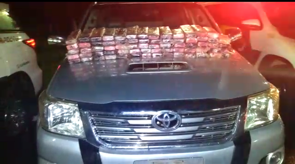 Durante a abordagem, o condutor apresentou nervosismo e, após vistoria no veículo, foi encontrado um compartimento no banco traseiro da caminhonete, onde foram localizados 69 tijolos de maconha, totalizando 75,8 quilos.
