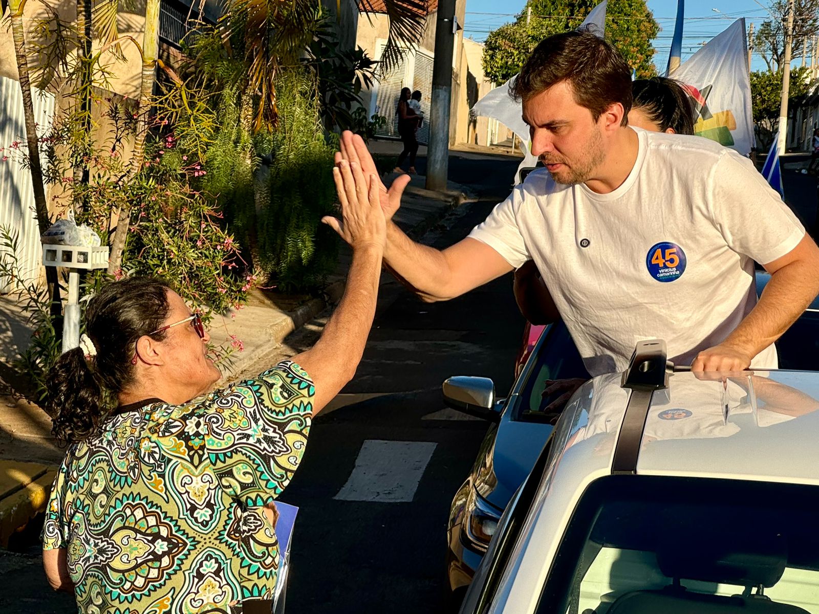 O candidato a prefeito de Marília pelo PSDB, Vinicius Camarinha, ao lado de seu vice Rogerinho (PP), continuou sua carreata nesta terça-feira (27) em mais três bairros da zona norte.