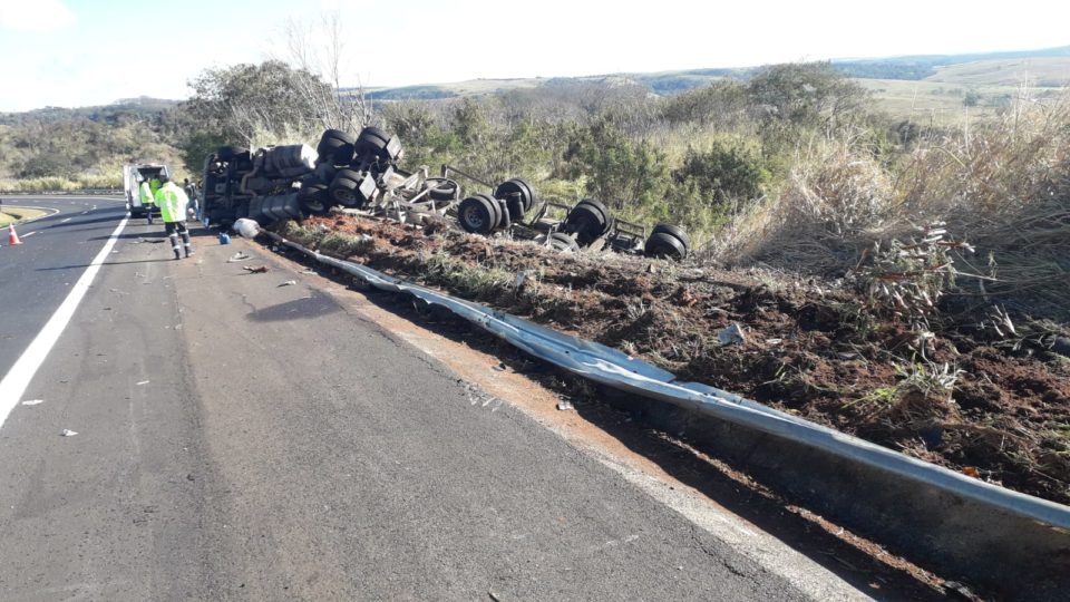 Não houve a necessidade de intervenção da pista, já que a carreta tombou no acostamento, para fora da rodovia. O motorista sofreu ferimentos e foi socorrido. Ainda não há mais informações sobre o estado de saúde dele.
