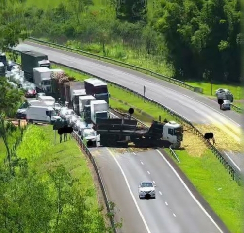 Um acidente envolvendo uma carreta carregada de laranjas provocou a interdição total da rodovia Comandante João Ribeiro de Barros (SP-294) e gerou congestionamento na tarde deste sábado (29) em Duartina.