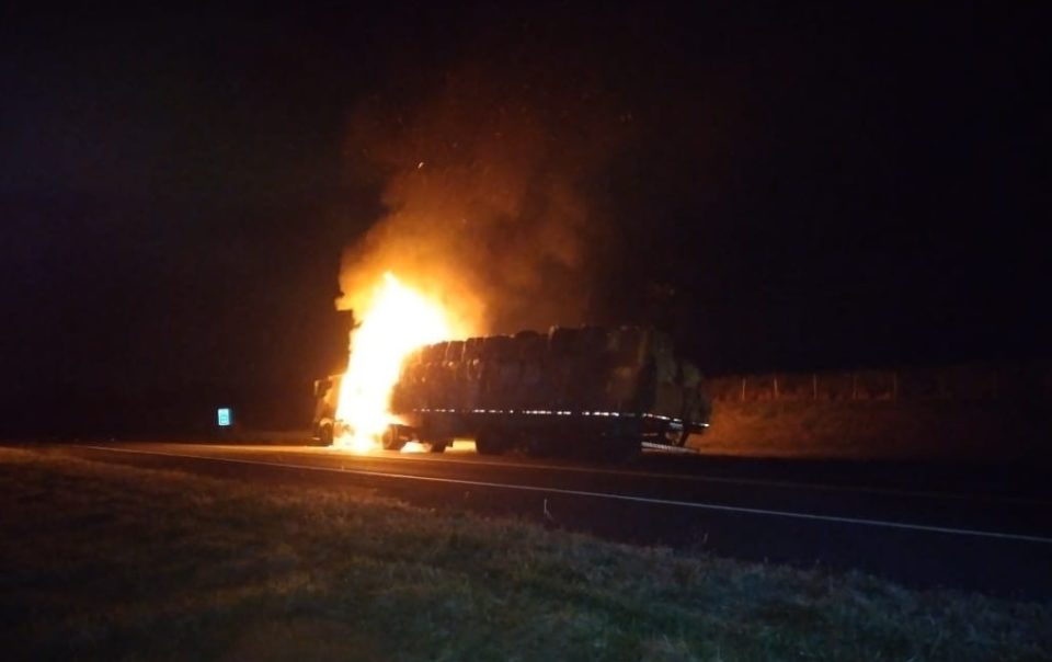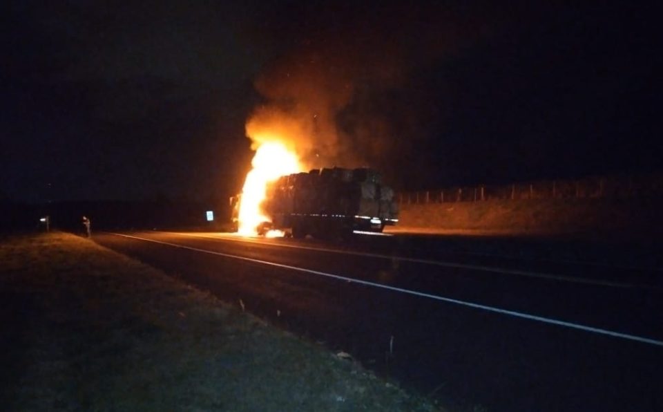 Carreta pega fogo e interdita trecho inteiro da BR-153