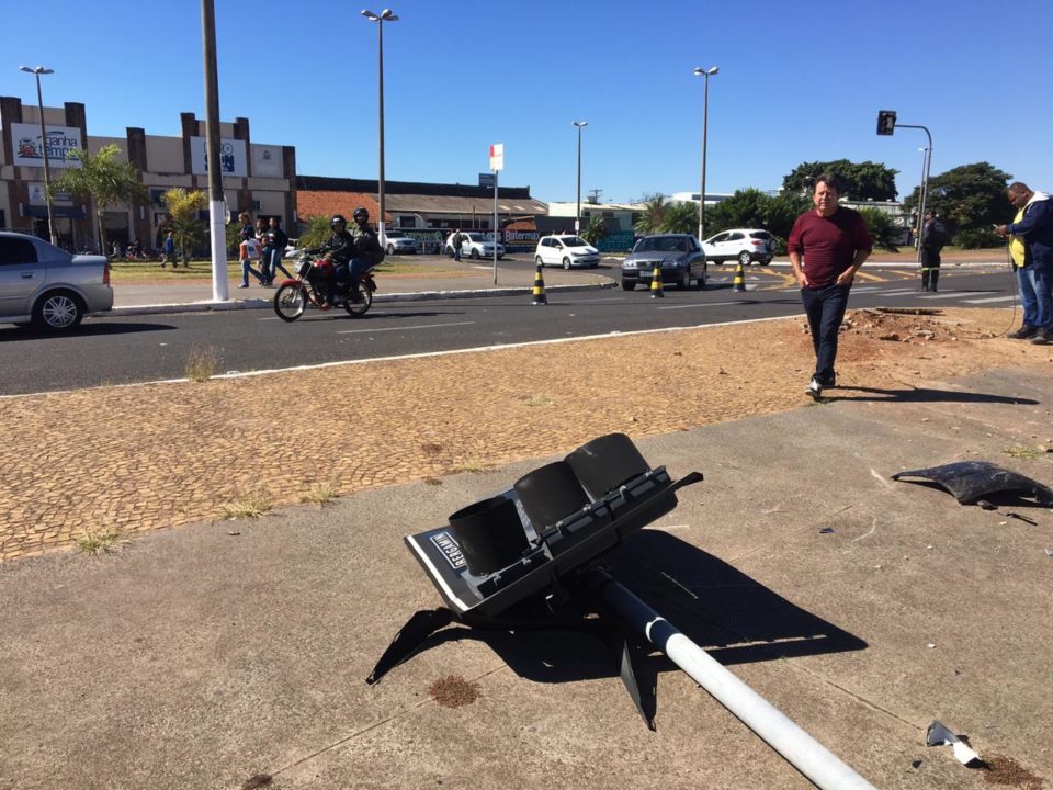 Carro arrancou semáforo na avenida Sampaio Vidal (Foto: Divulgação)