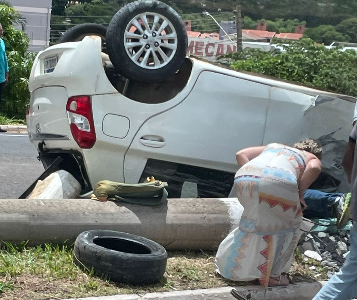 Um carro bateu um contra um poste e acabou capotando na avenida José Carlos Sanches Cibantos, uma das entradas de Marília, que fica na zona norte. O acidente aconteceu no início da tarde desta quinta-feira (11).