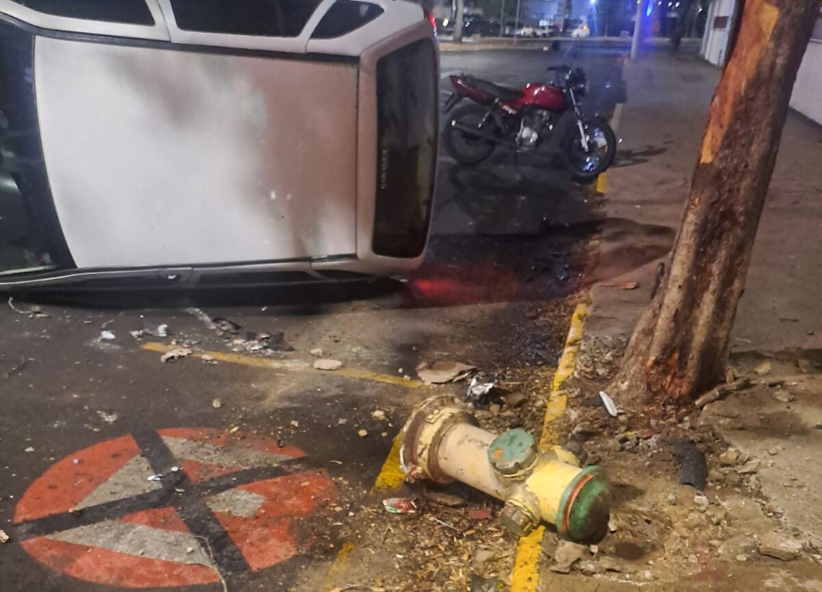 Impacto da batida derrubou hidrante e fez carro tombar em Garça (Foto: Redes sociais)