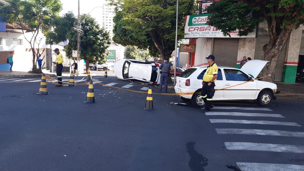 Dois veículos bateram e após o choque um deles capotou. Duas pessoas tiveram ferimentos leves e foram encaminhadas até o Hospital das Clínicas.