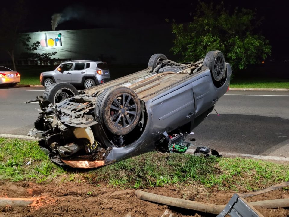 Um veículo capotou na madrugada deste domingo (28), na avenida Sanches Cibantos, zona Norte de Marília.