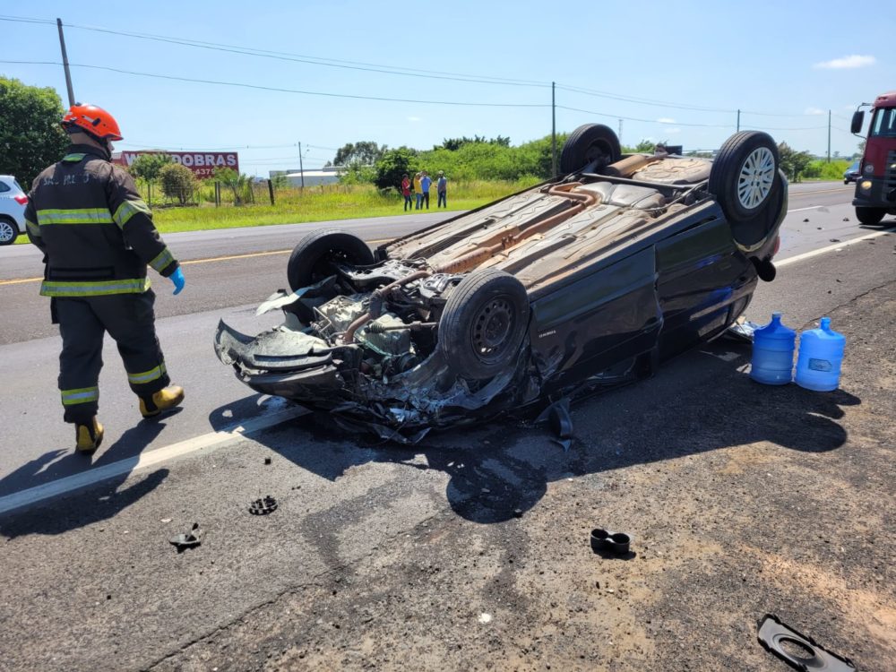 Um veículo capotou na manhã desta terça-feira (8), em um acidente na Rodovia Comandante João Ribeiro de Barros (SP-294), em Marília.