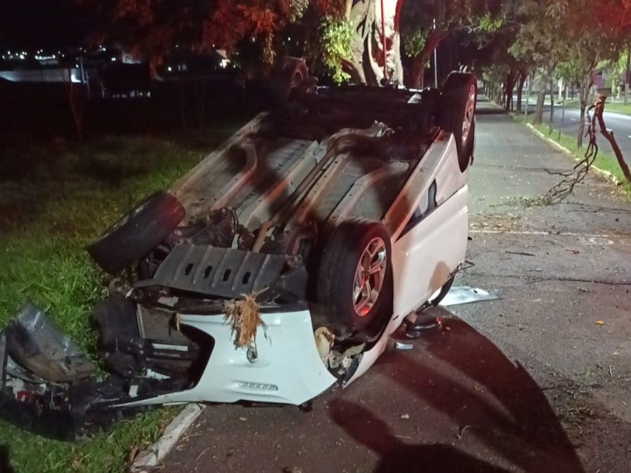 Um carro capotou no início da madrugada deste sábado (29) na avenida das Esmeraldas, próximo ao Jardim Tropical, na zona leste. O acidente ocorreu na pista sentido do Centro ao bairro. Após perder o controle, o veículo foi parar na pista de cooper à margem da via.