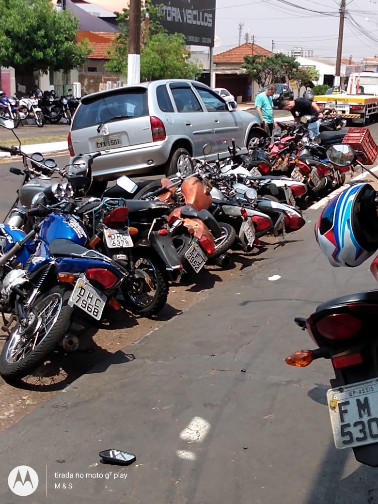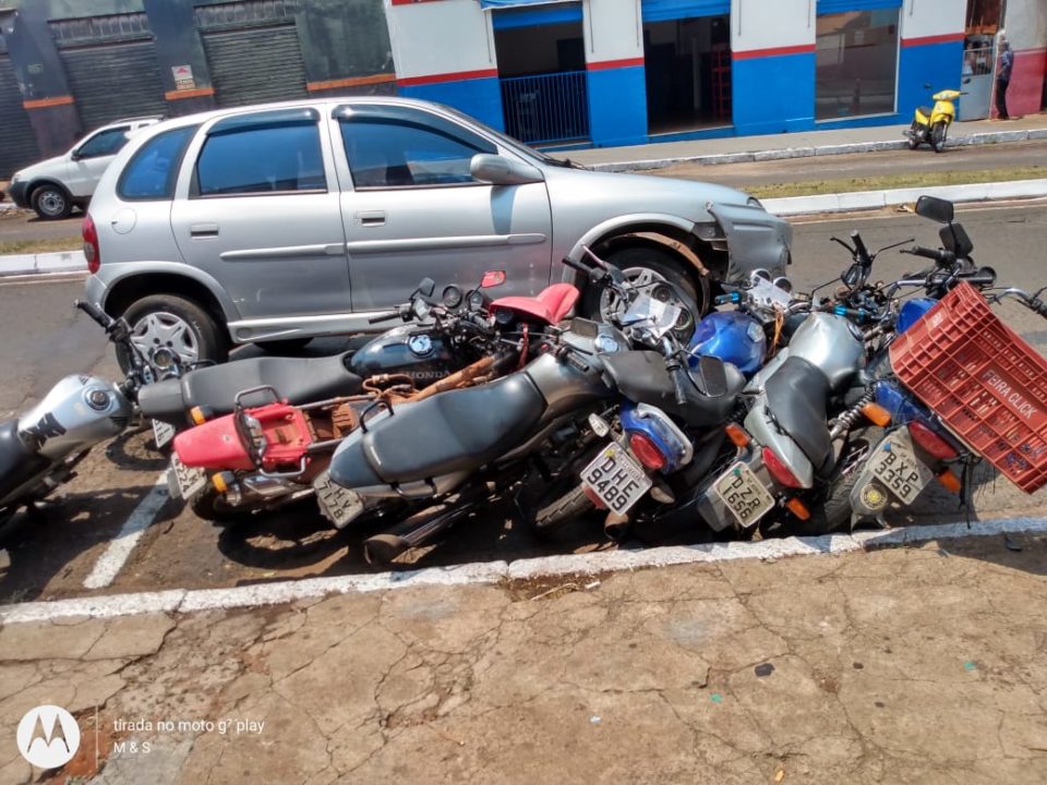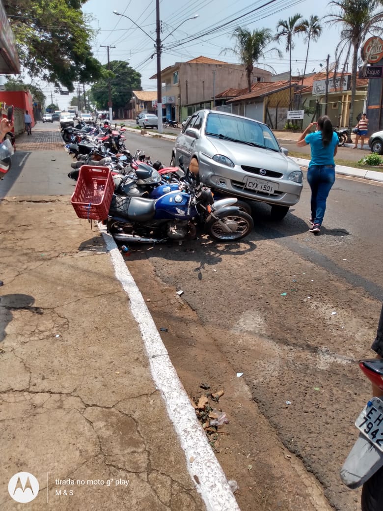 Um veículo perdeu o controle e atingiu mais de 10 motos que estavam estacionadas no Centro de Assis (distante 75 quilômetros de Marília) nesta quarta-feira (7).
