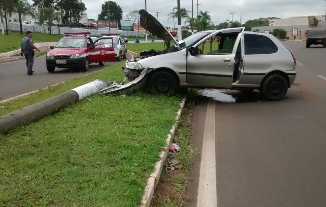 Segundo informações do Corpo de Bombeiros, o motorista de um Fiat Pálio perdeu o controle da direção e derrubou um poste de iluminação no local.