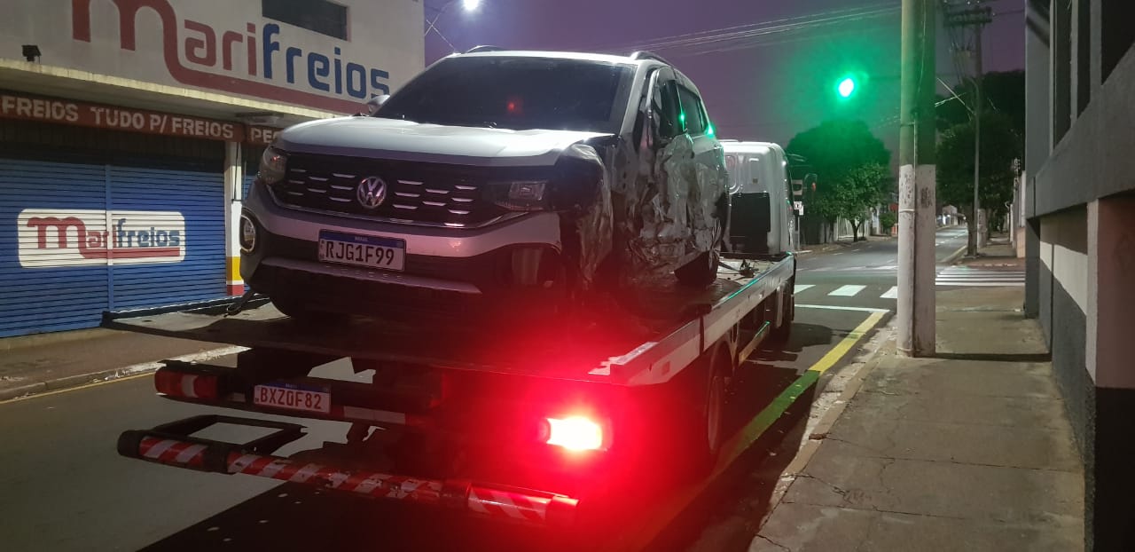 Por volta das 0h20, os policiais foram acionados com a informação de acidente de trânsito sem vítima. No local foi encontrado o veículo Volkswagen T-Cross Sense TSI AD, sem condutor.