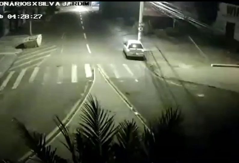 Câmeras de segurança da Prefeitura de Ourinhos (distante 95 quilômetros de Marília) flagraram o momento que um carro em alta velocidade bate em um poste de iluminação pública.