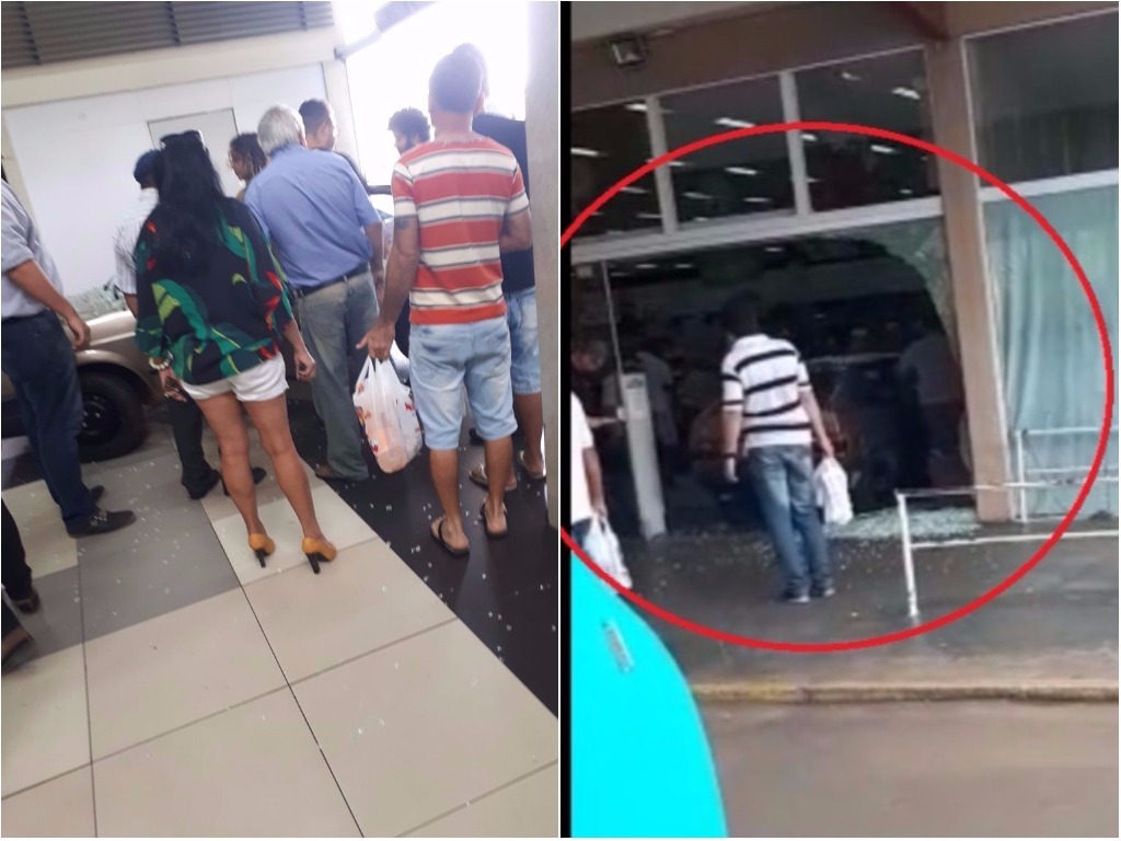 De acordo com o Corpo de Bombeiros, o veículo quebrou uma das portas de vidro do supermercado e assustou os clientes que estavam no local.