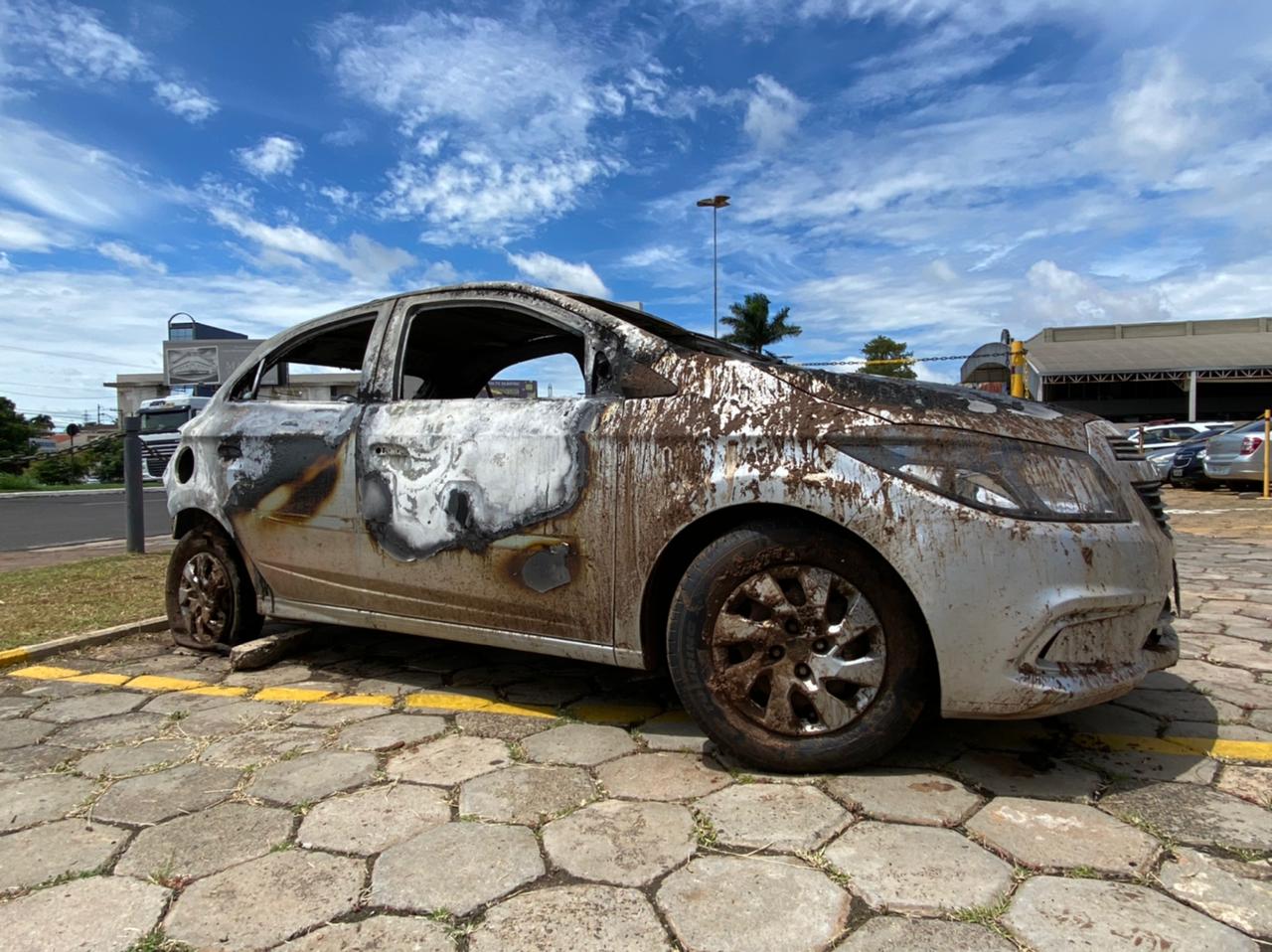 O carro de um motorista de aplicativo, que foi roubado em Guaiçara (distante 60 quilômetros de Marília), acabou localizado totalmente destruído por um incêndio na noite desta quarta-feira (6).