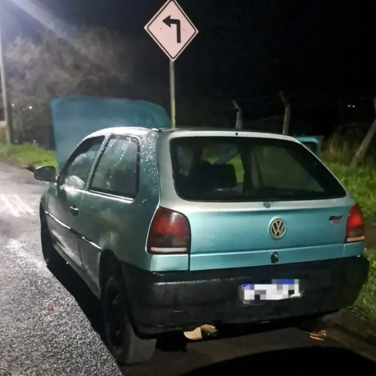 Pela manhã, policiais atenderam a um chamado que indicava um veículo abandonado em uma estrada rural nas proximidades do distrito. No automóvel, os militares também localizaram itens furtados de outro carro.