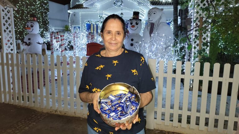 Além do espetáculo visual, há um gesto que aquece ainda mais o coração de quem passa por ali. A proprietária da casa distribui doces para as crianças, reforçando o clima de partilha típico do Natal. Neste ano, o filho dela conseguiu quatro mil unidades, que estão sendo entregues aos visitantes.