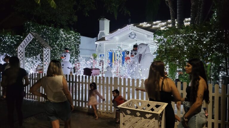 A residência de Lina Trevisan e Caio Gabaldi deixa de ser apenas um endereço e se torna ponto de encontro. Luzes, cores e enfeites cuidadosamente planejados tomam conta da fachada e da rua, criando um cenário que desperta memórias, abraços e aquele sentimento de confraternização que parece ganhar força nesta época do ano.
