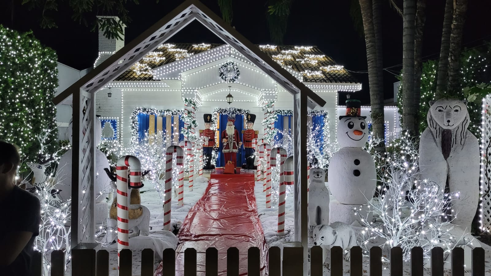 A residência de Lina Trevisan e Caio Gabaldi deixa de ser apenas um endereço e se torna ponto de encontro. Luzes, cores e enfeites cuidadosamente planejados tomam conta da fachada e da rua, criando um cenário que desperta memórias, abraços e aquele sentimento de confraternização que parece ganhar força nesta época do ano.