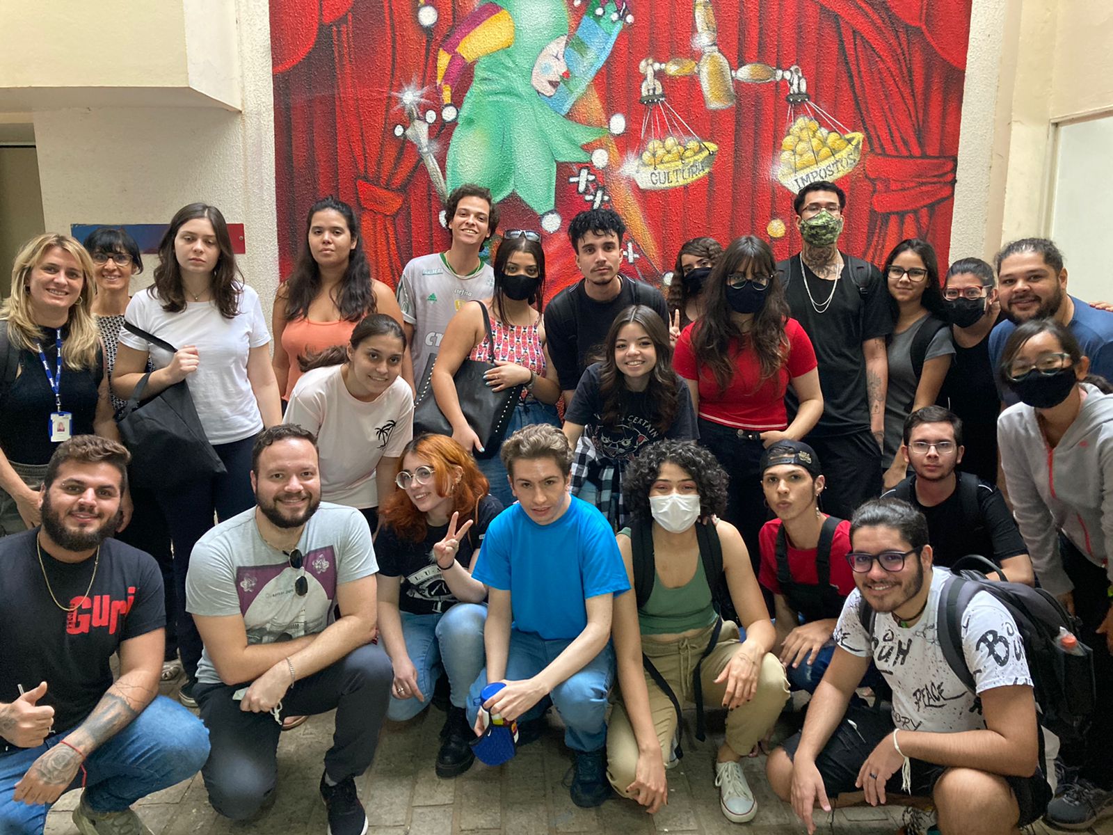 Os alunos foram acompanhados pelos professores do Senac, Carol Montoro e Edson Rossi, que solicitaram a visita para proporcionar aos alunos uma experiência com o ambiente profissional do ator.