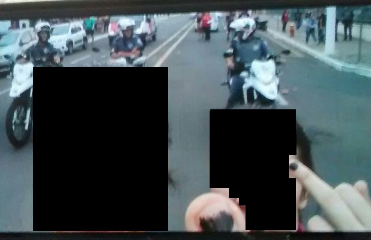 Segundo a Polícia Militar, uma equipe da Rocam fazia apoio ao evento pela Avenida Sampaio Vidal, quando visualizou duas pessoas tirando uma ‘selfie’ com gestos obscenos direcionados aos policiais.